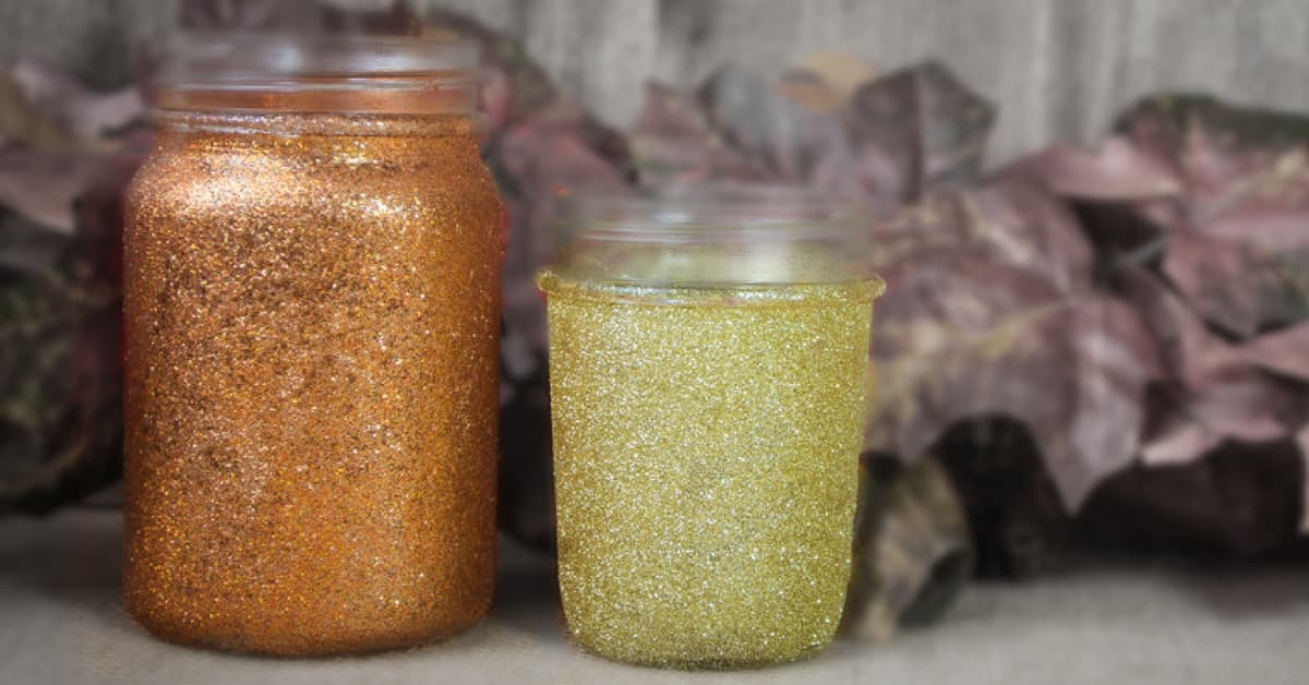 Estos adornos son muy fáciles de hacer: solo tenés que pintar un frasco de mermelada con cola vinílica y hacerlos rodar en abundante brillantina. Que quede bien adherida así además de brilloso, está prolijo.