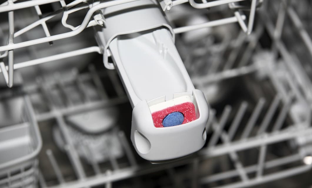 Debes ser estratégico al cargar el lavavajillas. Coloca los artículos más sucios en el centro de la rejilla inferior, hacia el brazo rociador. Y asegúrate de que nada importante está bloqueando el dispensador de detergente; podría afectar la forma en que este se abre y evitar que el detergente del lavavajillas sea dispensado adecuadamente. Si vas a hacer dos lavados, intenta equilibrar artículos muy sucios con otros menos sucios.