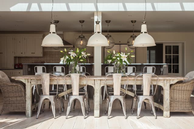 Inspirado en las casas de campo de Gran Bretaña, el shabby chic cuenta con un ícono característico que nunca falta: las flores. Rosas de todos los tamaños estampadas en manteles, almohadones y cortinas. Predominan el color blanco y los tonos pasteles que le dan un tono romántico al espacio. Otros elementos siempre presentes son las velas y las arañas patinadas.