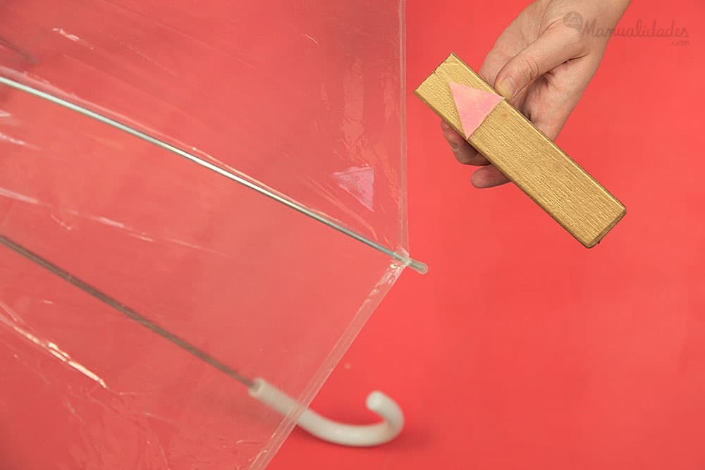 Seguro que no pensabas que con pegamento en barra podías decorar un precioso paraguas. La técnica es muy sencilla, y seguro que en cuanto la descubras querrás ponerla en práctica.