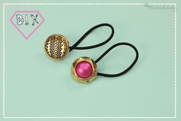 Otra opción para aprovechar tus gomas para el pelo es costumizarlas y así crear nuevos accesorios para el pelo muy originales. Todo lo que necesitas es encontrar un botón con un diseño que te guste, y añadirlo a la goma de pelo que desees modernizar.