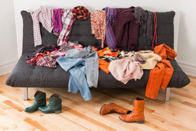 Comienza por poner en su lugar los artículos que no pertenecen a la habitación: platos, vasos, mascarillas, etc. Y a continuación deshazte de los papeles, recibos y envolturas que solemos dejar sobre la cómoda. Ten en tu cuarto una papelera que vaya con tu habitación para que puedas echar las cosas que no necesitas o tíralas en el baño.