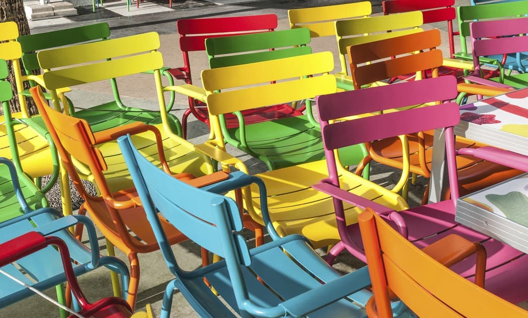 Cuando no tienes posibilidad de pintar una pared en tonos oscuros, debido a que el ambiente posee escasa iluminación natural y por ello es conveniente que esté pintado en colores claros o blancos, no hay por qué renunciar a una nota de color divertida y brillante. Simplemente pinta las sillas en verde manzana, naranja u otro color que te agrade y la impresión cambiará por completo.