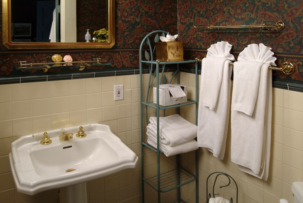Además de darle un toque elegante a cualquier habitación, en un baño un mueble antiguo cumple una misteriosa razón: crear la ilusión de espacio. Esto se logra colocando un mueble con patas, ya sea una silla para apoyar las toallas o un armario con patas. Por supuesto, ¡ni se te ocurra colocar algo debajo del mueble o la silla, porque se perderá el efecto!