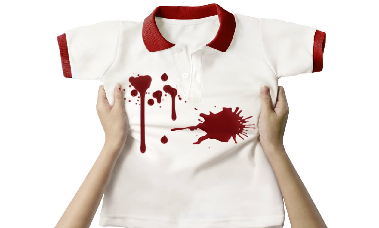 La mejor forma de remover manchas de sangre de la ropa es utilizando agua fría y agua oxigenada. Remoja la prenda manchada en agua bien helada y agrégale un poco de agua oxigenada, pero asegúrate de probar que el agua oxigenada no manche ni decolore la prenda.