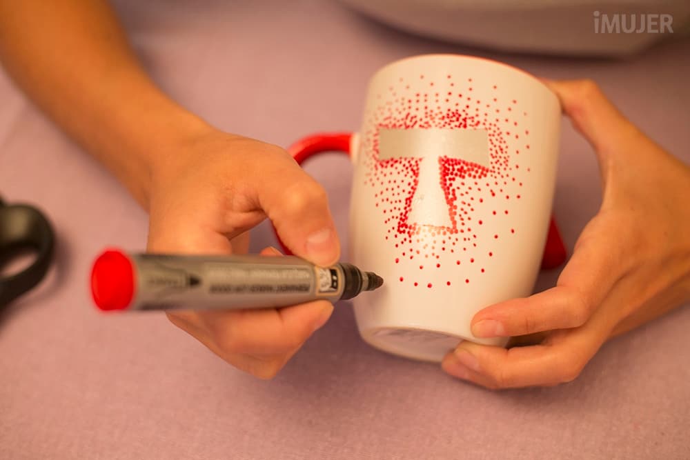 Pueden realizar manualidades para regalaros, cómo por ejemplo, estas tazas decoradas en casa. Tú realizas la de tu pareja, y tu pareja realiza la tuya. ¡Un detalle romántico y muy dulce!