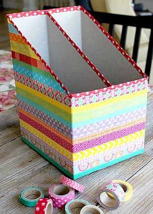 ¡Es muy lindo! Con algo de creatividad puedes armar y decorar un precioso organizador para revistas y libros.