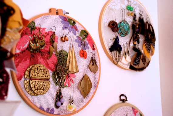 Otra forma de organizar la joyería, más precisamente los pendientes, es colocándolos en bastidores. ¡Se ven tan lindos! Así no habrá forma de que los pierdas.