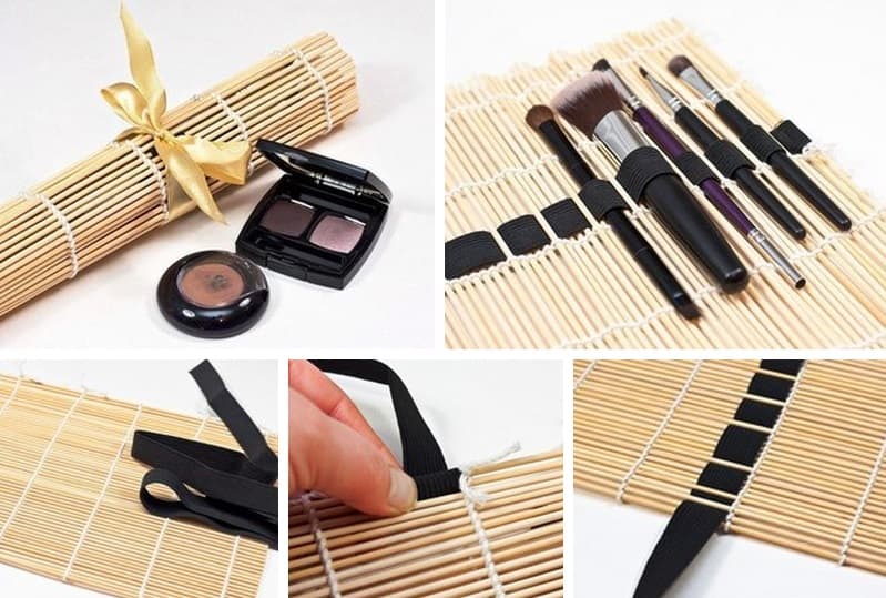 Con una pequeña estera y elástico puedes armar tu propio estuche donde guardar las brochas y pinceles. ¡Es genial!
