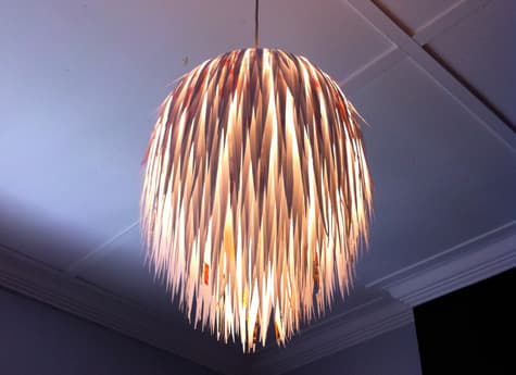 Puedes crear esta magnífica lámpara araña con tan solo una lámpara china y tiras de papel. ¡Intenta darle tu toque personal a las lámparas en tu casa!