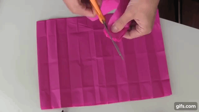 Paso 3. Una vez que todo el papel esté plegado, dóblalo para juntar las puntas. Recorta éstas en forma redondeada (si quieres puedes separar a la mitad las hojas para que sea más sencillo).