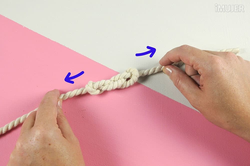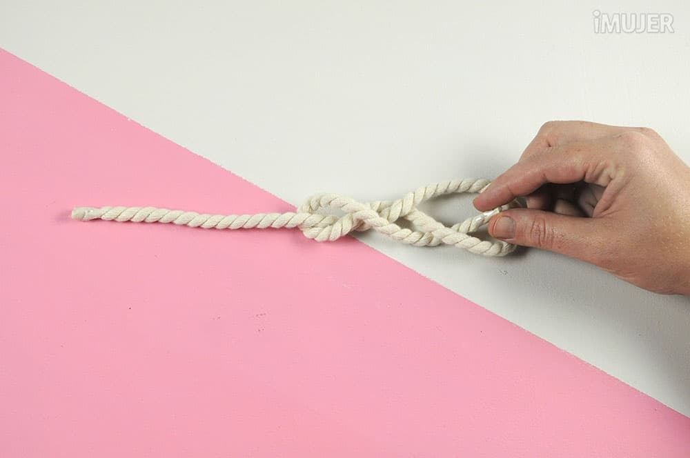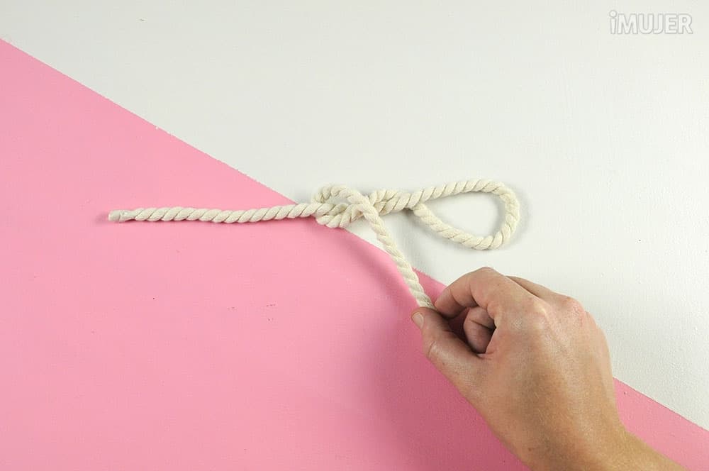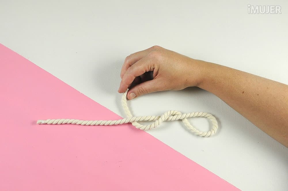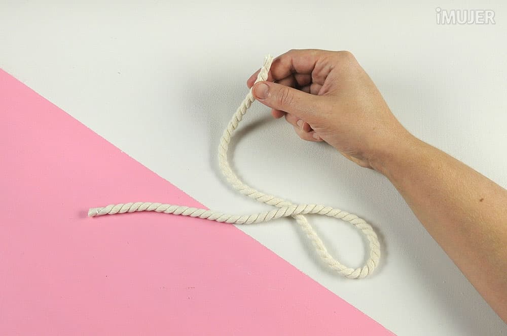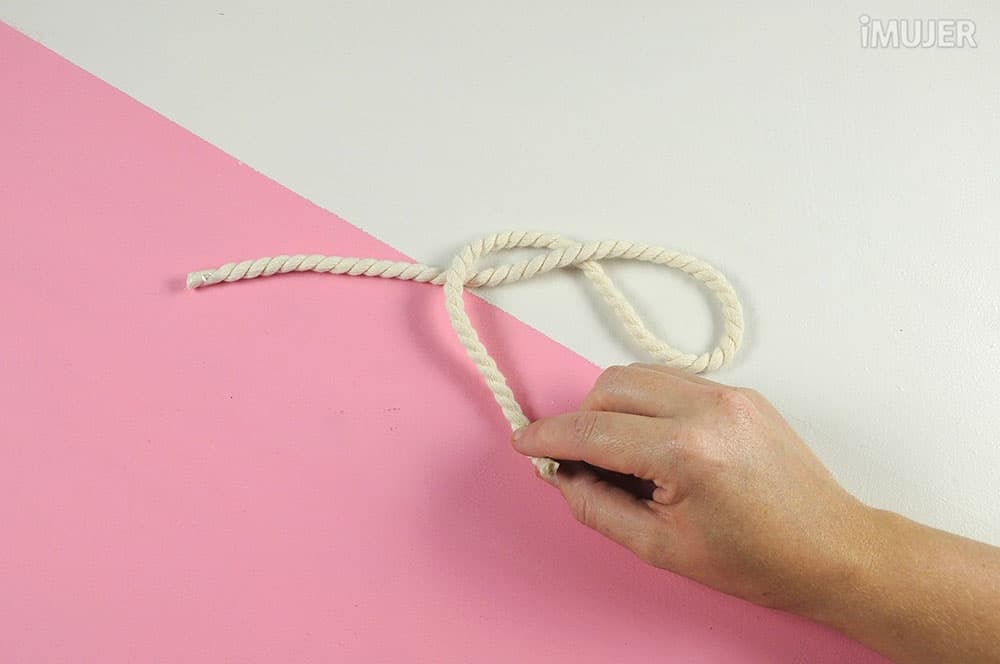 Lleva un extremo de la cuerda desde abajo hacia arriba pasándola por debajo.