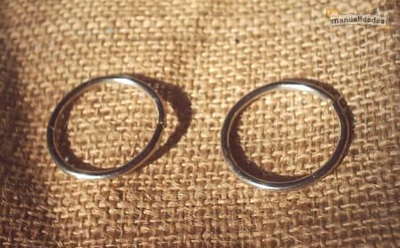 Comienza con 2 aros de metal. Si no tienes aros puedes hacerlos enroscando un alambre grueso en una forma cilíndrica y luego cortándolo con un alicate.