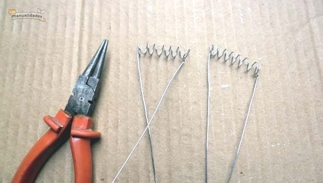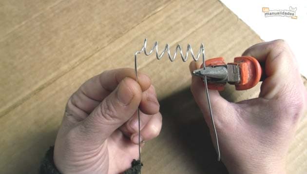 El paso siguiente es armar el alambre para que parezca una lamparilla real. Simplemente tomamos un alambre fino y le damos la forma de espiral con una pinza redonda.