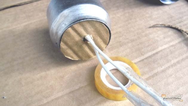 Un cilindro de cartón se enhebra en el portalámparas, para que quede firme el conjunto.