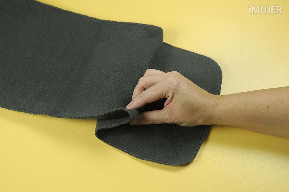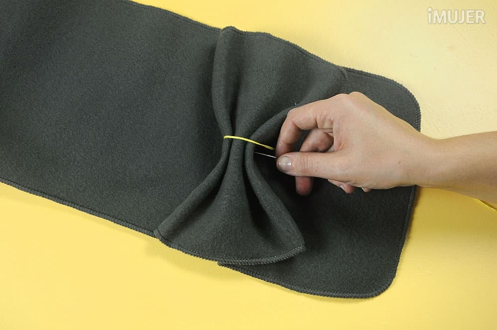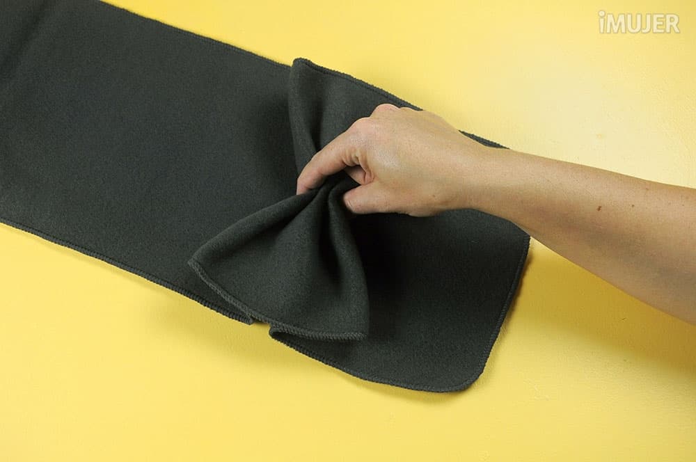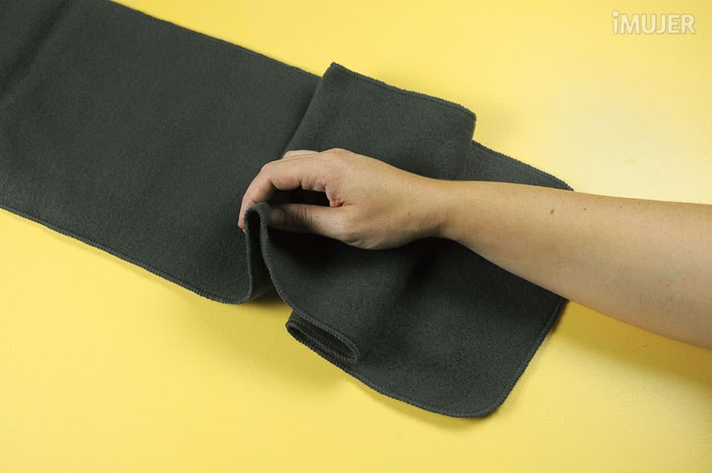 Haz un pliego en tu bufanda de aproximadamente 5 centímetros.