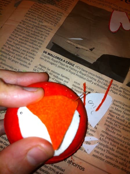 Haz las plantillas de la barriga, el pico, las cejas y la cresta en papel. Córtalas en fieltro, utiliza los colores adecuados respetando cada muñeco. Jesica nos cuenta que, al ser piezas pequeñas, las ha hecho más o menos a ojo, retocándolas sobre la marcha.