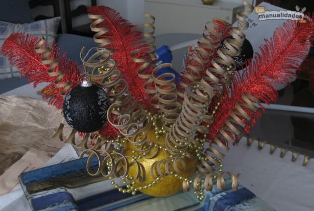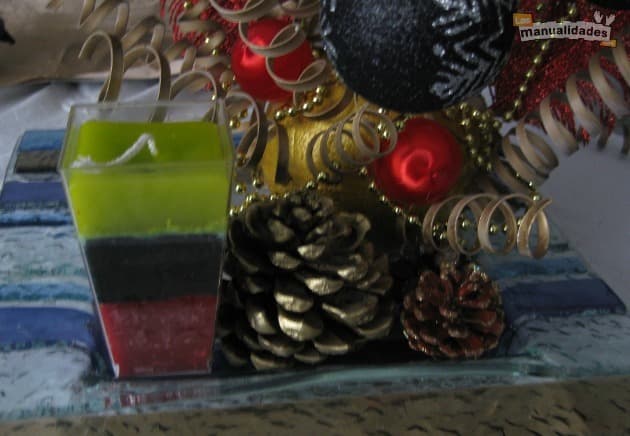 Otra de las 10 manualidades seleccionadas para el Concurso de manualidades navideñas 2012 es este fantástico centro de mesa navideño enviado por Maria del Rosario.