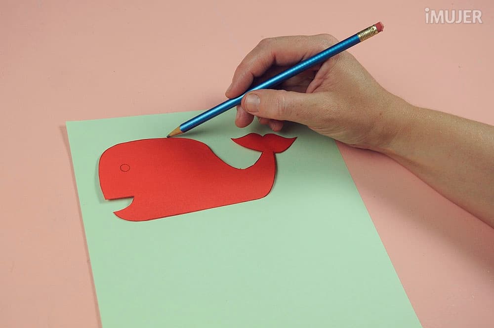 Dibuja aproxiamdamente seis ballenas sobre goma eva, preferiblemente que sean de distintos colores y tamaños.
