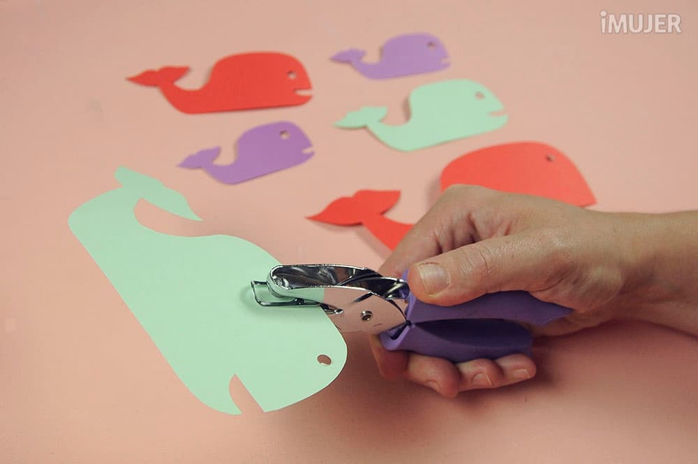 Recorta cada una de ellas y perfóralas en la parte superior.