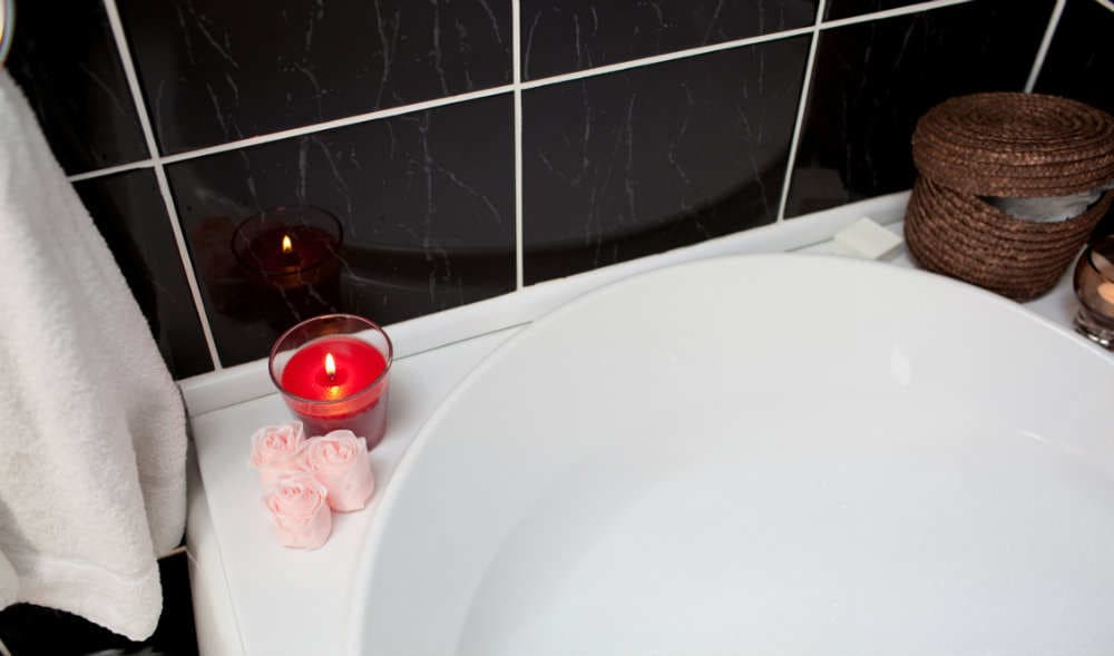A veces solo basta un poco de creatividad para darle al baño un poco de romanticismo. Decorar con velas aromáticas junto con algunos pétalos de rosa puede bastar para darle nuevos aires y dar lugar a una noche romántica.