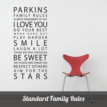 Coloca esta pegotina para paredes en el dormitorio de tus niños e inmortaliza las reglas familiares. "Trabaja mucho, pero ríe aún más", "piensa antes de hablar", "aspira a las estrellas"...