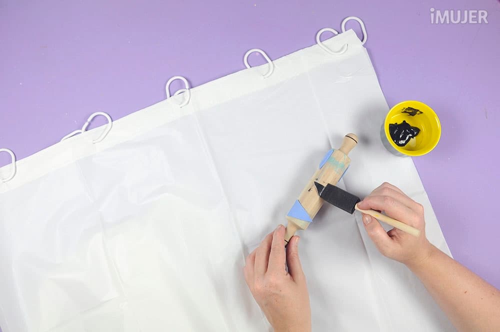 Deja que la pintura seque y tendrás una nueva cortina de baño con diseño exclusivo.