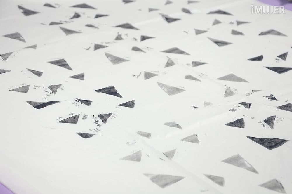 Estampa las figuras de sello sobre la cartulina con cuidado de que la forma quede por completo.