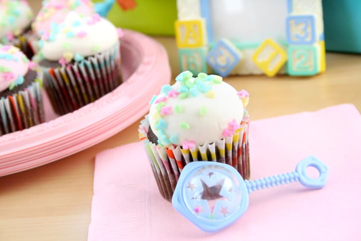 En primer lugar puedes enmarcar imágenes de bebés durmiendo (puedes bajarlas de la web o recortarlas de revistas). Utilizalas para decorar la habitación. Además, crea un buffet de postres con diferentes tipos de galletas y botellas de leche. Ata cintas de colores en cada una.