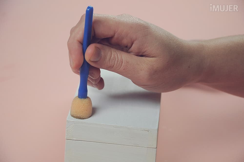 Cubre toda la caja con la pintura blanca, que no quede ningún espacio sin pintura.