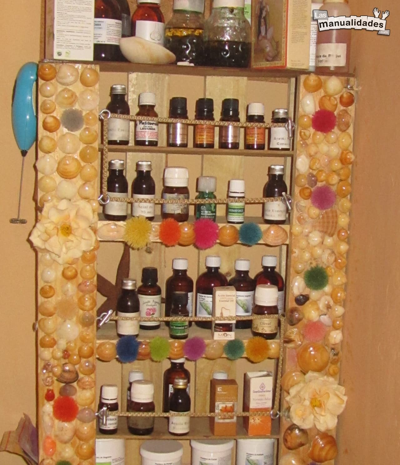 Por último barniza con dos o tres capas para sellar el trabajo y ¡listo! Ya tienes una estantería decorada para el baño realmente estupenda, sencilla y muy fácil. ¿Acaso no es una maravilla?