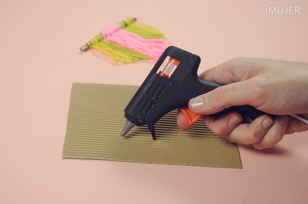 Coloca pegamento con la pistola de silicona sobre el cartón corrugado.
