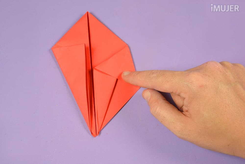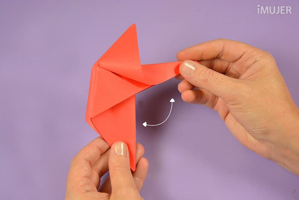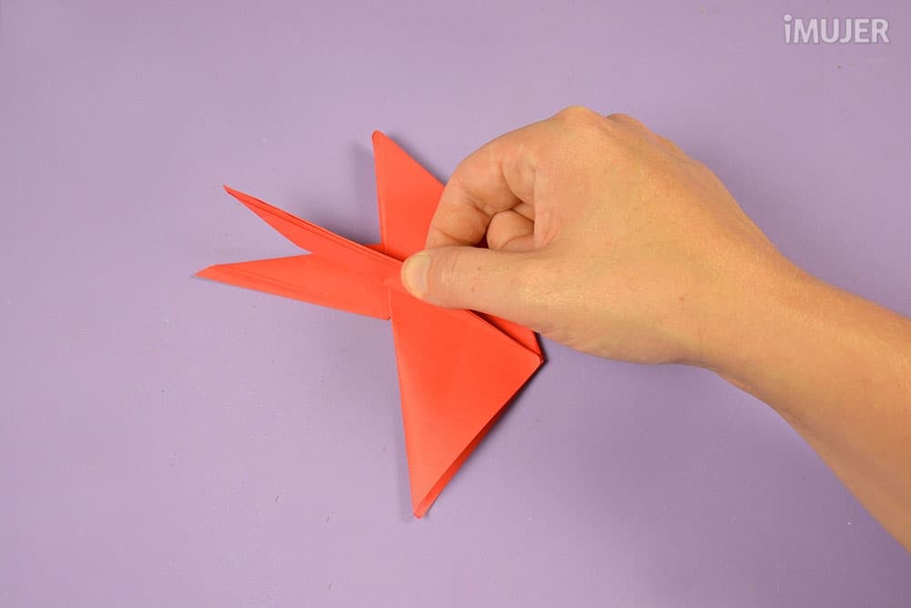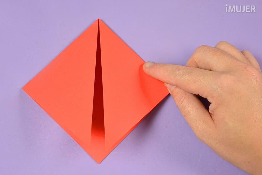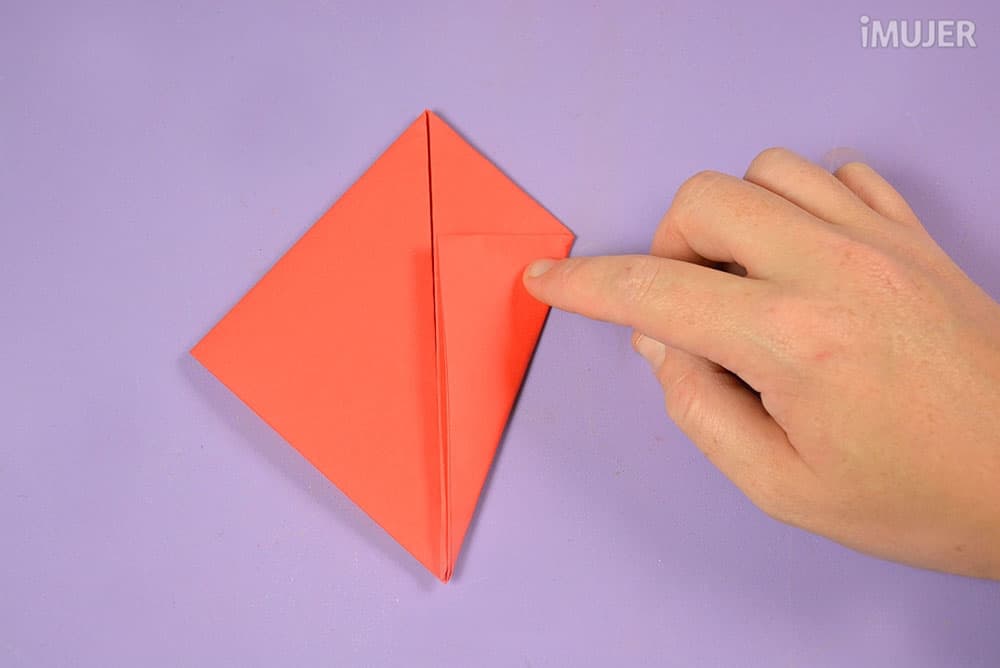 2. Lleva los vértices del triángulo hacia el centro y forma nuevamente un cuadrado