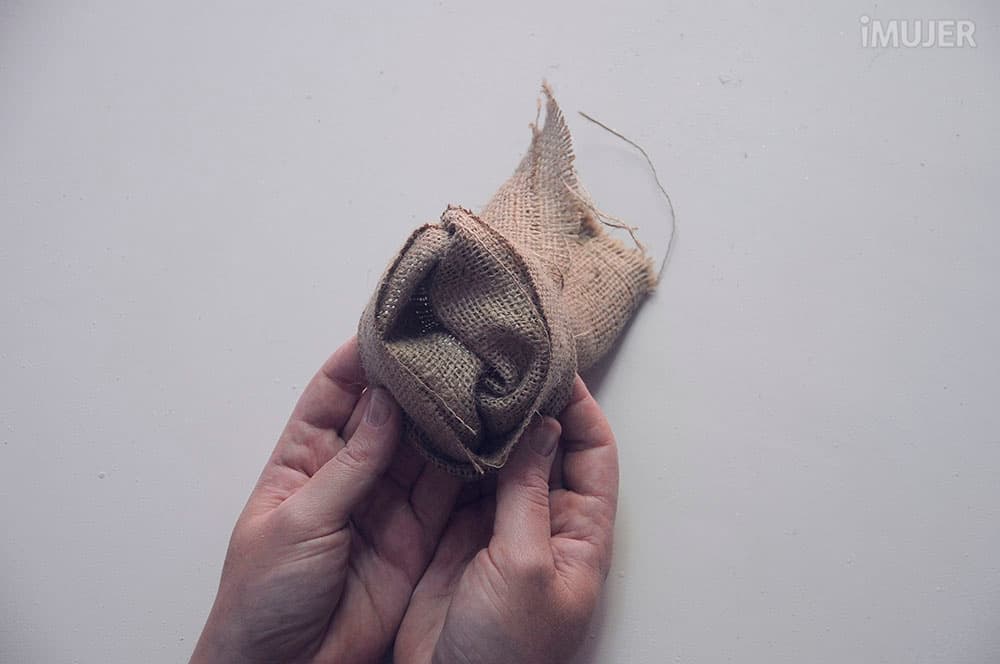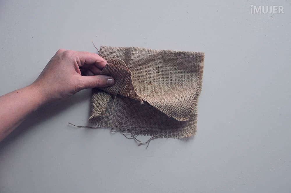 Dobla un pequeño trozo de arpillera y luego dóblalo a la mitad tal como muestra la imagen.