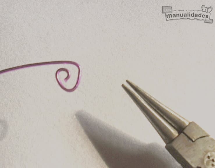 Comienza apretando la punta del alambre con la pinza y enróllalo para hacer un pequeño espiral.