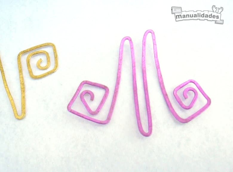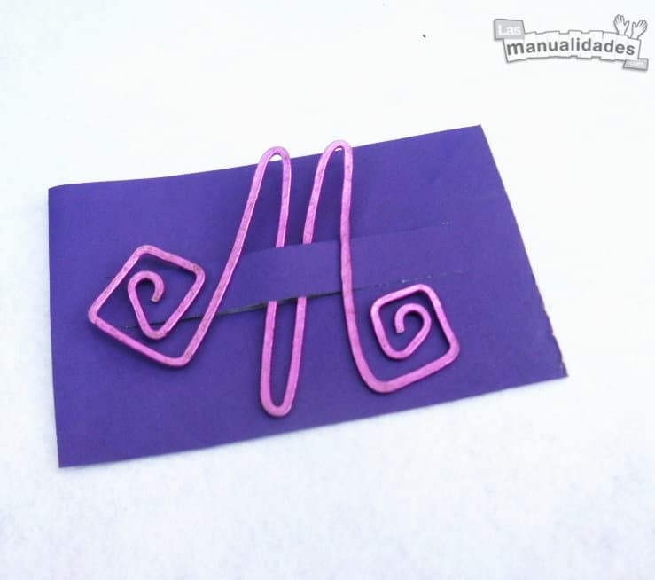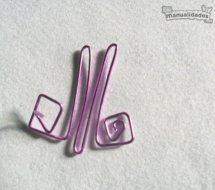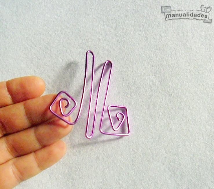 La forma para hacer este marcador de alambre es un espiral, una “M” y luego otro espiral.
