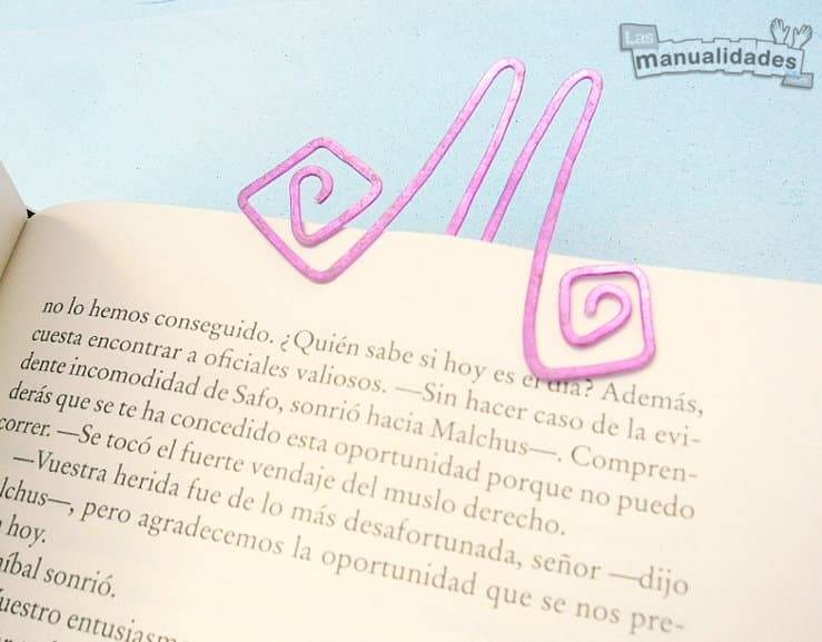 La forma de colocarlo entre las páginas de un libro es dejar los espirales hacia delante y colocar las partes largas por detrás, sujetando las hojas.