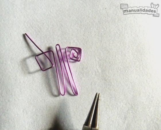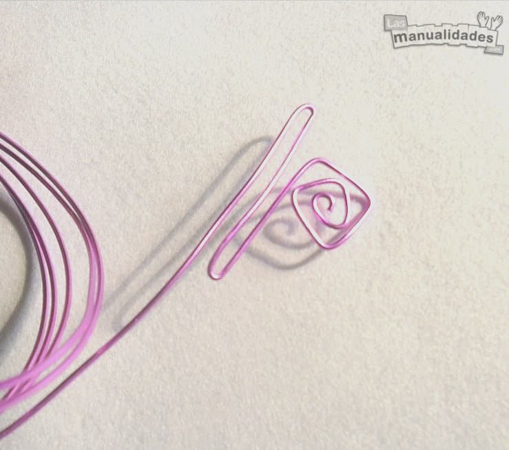 Al finalizar, deja un trocito de alambre corto para hacer la última vuelta. Si es necesario, córtalo un poco, intentando que la forma te quede similar al otro extremo del alambre.