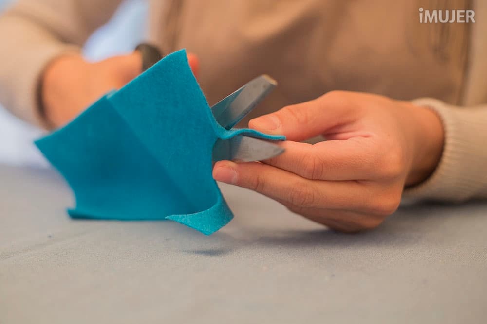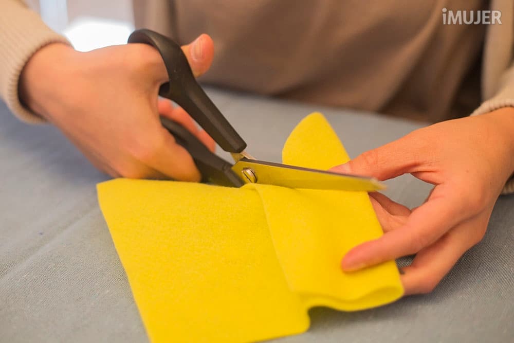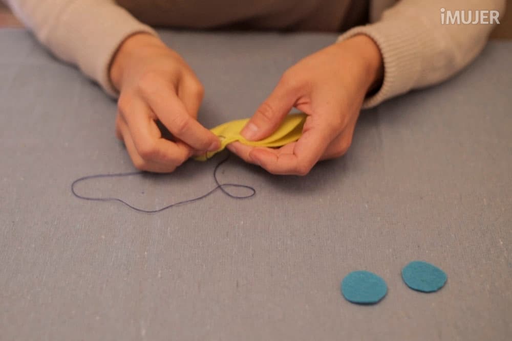Corta el fieltro con forma circular y con el fieltro del otro color, haz círculos más pequeños.