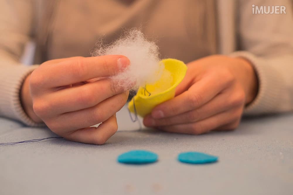 Dobla por el medio el fieltro grande y coloca dentro la guata.