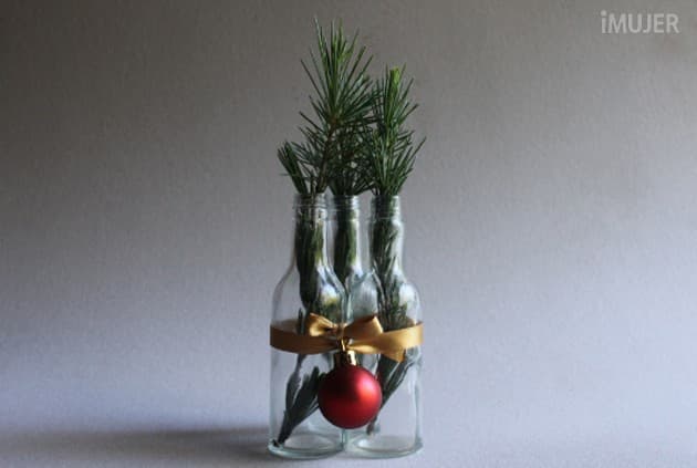 Por último, colocá una ramita de pino en cada una de las botellitas, haciendo que lleguen hasta el fondo.