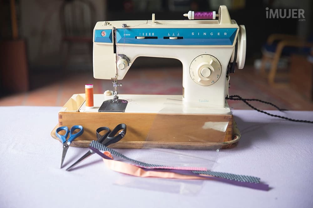Cóselo al pvc con la máquina de coser, recorta el sobrante con la tijera y repite el mismo procedimiento con el borde opuesto.