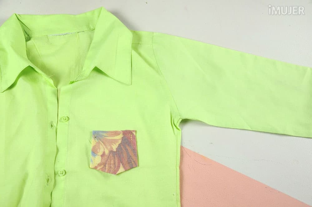 ¡Y listo! Tendrás una camisa renovada con un bolsillo estampado súper atractivo y fácil de hacer.