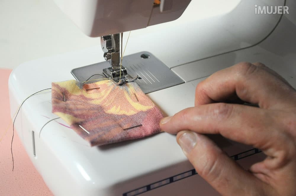 Sujeta luego los bordes de la tela con los alfileres.
