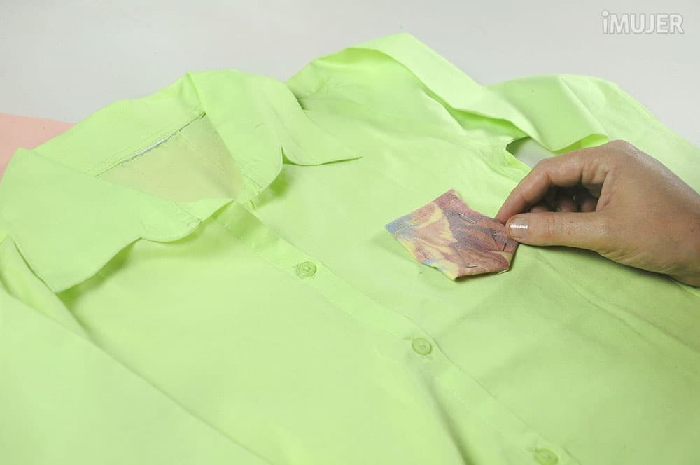 Luego coloca el bolsillo sobre la camisa.