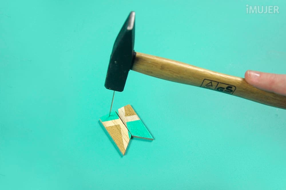 Usa un clavo y martillo para hacer un orificio en la parte superior de la pieza.