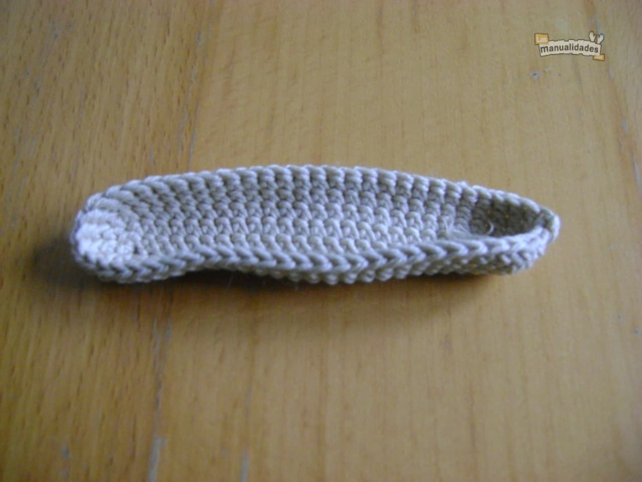Para hacer la parte exterior del pan, usamos lana de color beige, y tejemos una cadeneta de 22 puntos.