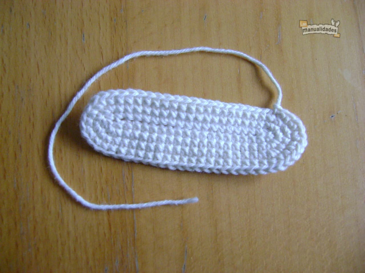 Para hacer la parte interior del panecillo, repetiremos el patrón de la parte exterior, pero sólo las 3 primeras vueltas, y en color crema o blanco.
