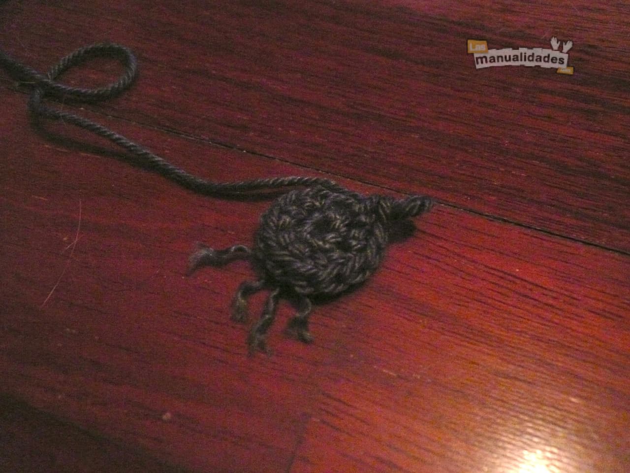 Con la lana gris oscuro y la aguja de ganchillo empezamos haciendo un anillo mágico con seis puntos.