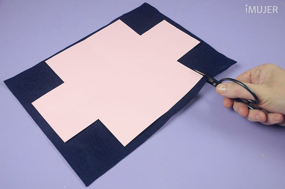 Corta un molde rectangular con aletas y corta el fieltro por el contorno.